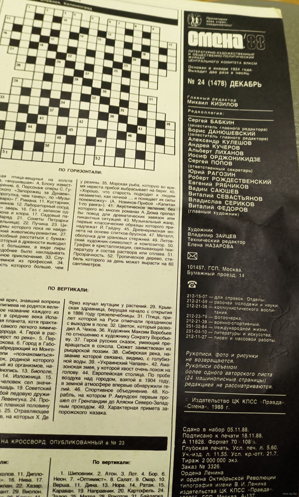 СМЕНА.Номер 24,декабрь 1988г..Литературно-художественный и общественно-политический журнал ЦК ВЛКСМ.