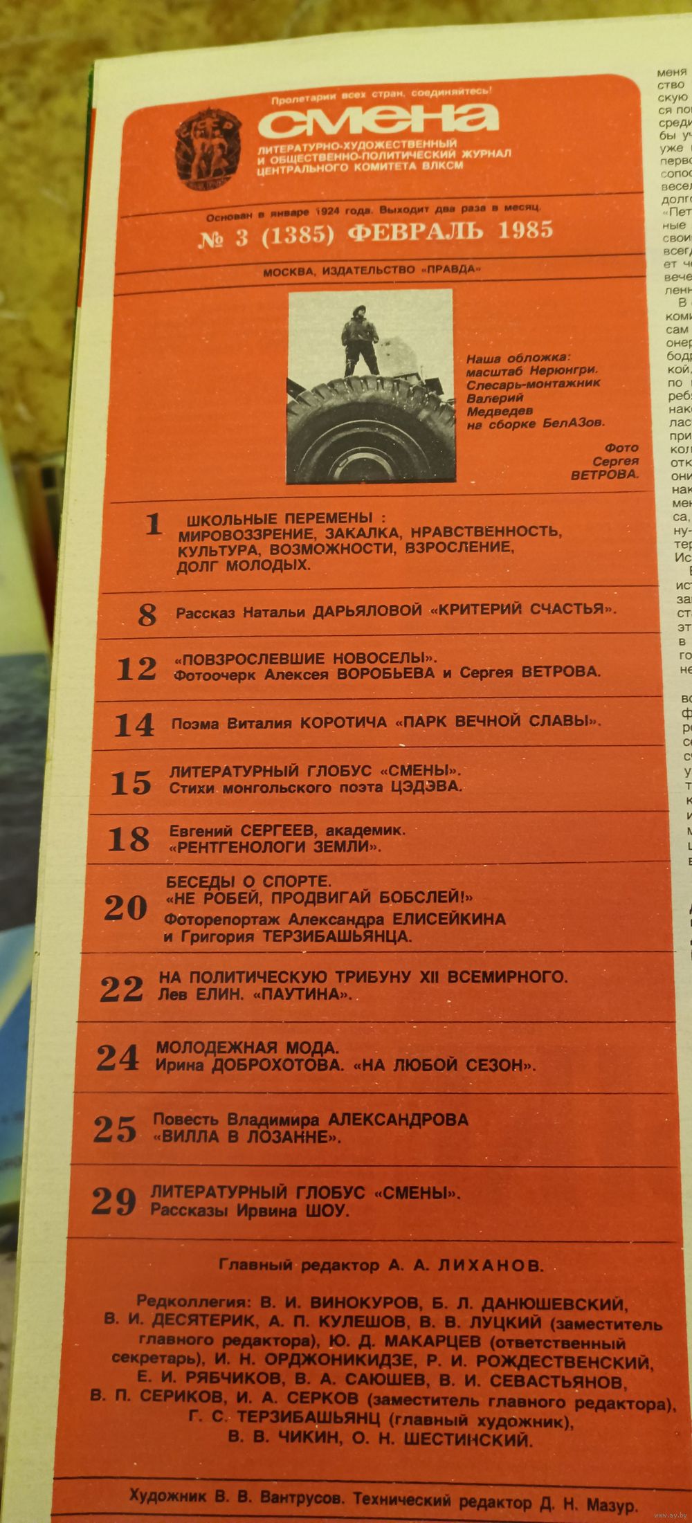 СМЕНА.Номер 3 ,февраль 1985г..Литературно-художественный и общественно-политический журнал ЦК ВЛКСМ.5