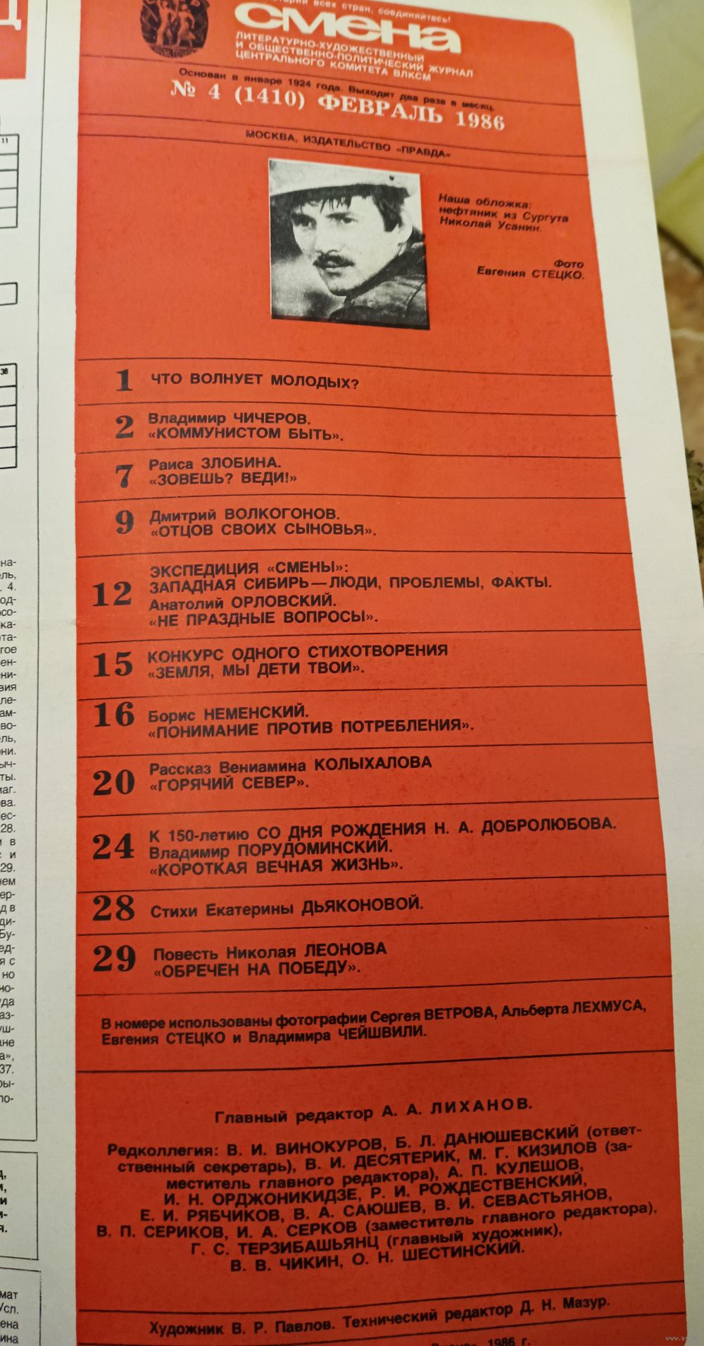 СМЕНА.Номер 4,февраль 1986г..Литературно-художественный и общественно-политический журнал ЦК ВЛКСМ.