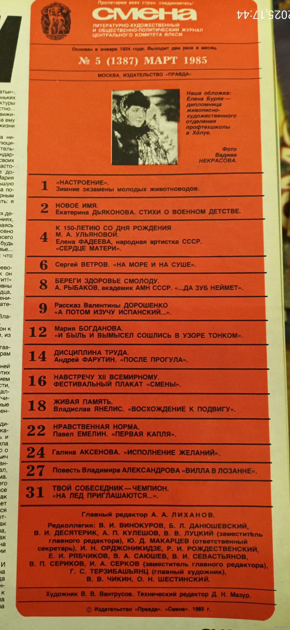 СМЕНА.Номер 5 ,март 1985г..Литературно-художественный и общественно-политический журнал ЦК ВЛКСМ.5