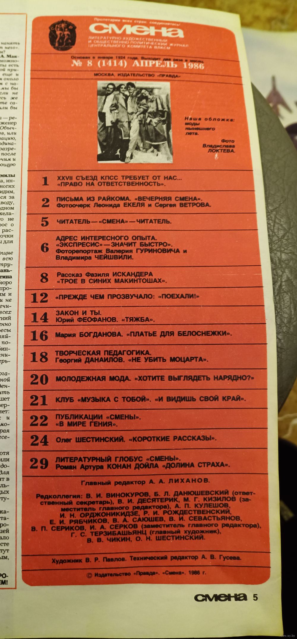 СМЕНА.Номер 8,апрель 1986г..Литературно-художественный и общественно-политический журнал ЦК ВЛКСМ.