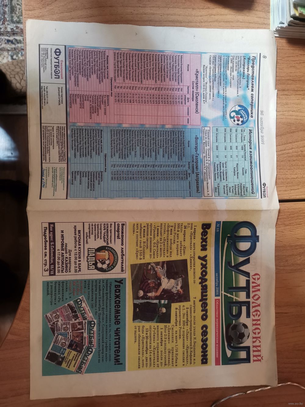 Газета Смоленский футбол №18. Октябрь 2001г.