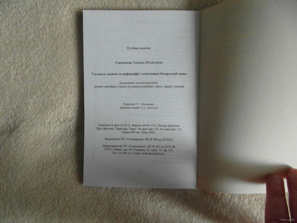 Смольская Т.М. Тэставыя заданнi па арфаграфii i пунктуацыi беларускай мовы. 2002 г. Автограф.