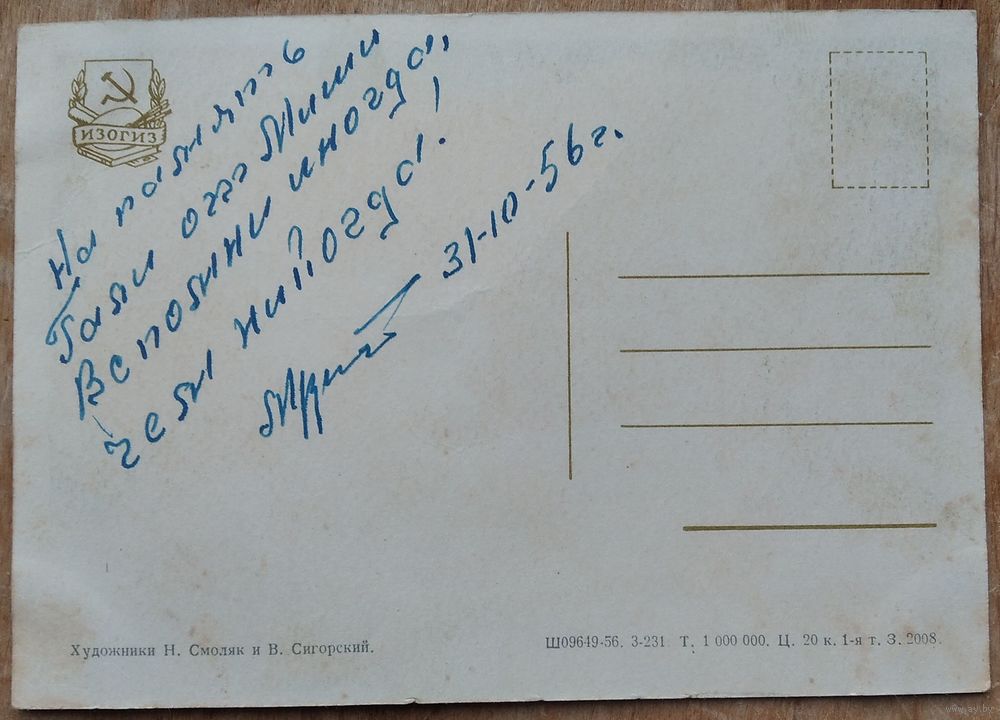 Смоляк Н. Сигорский В. Поздравляю с Великим Октябрем. 1956 г. Подписана.