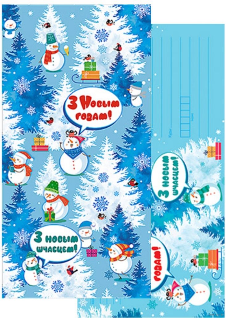 Снеговики. С Новым Годом! Открытка двойная с конвертом