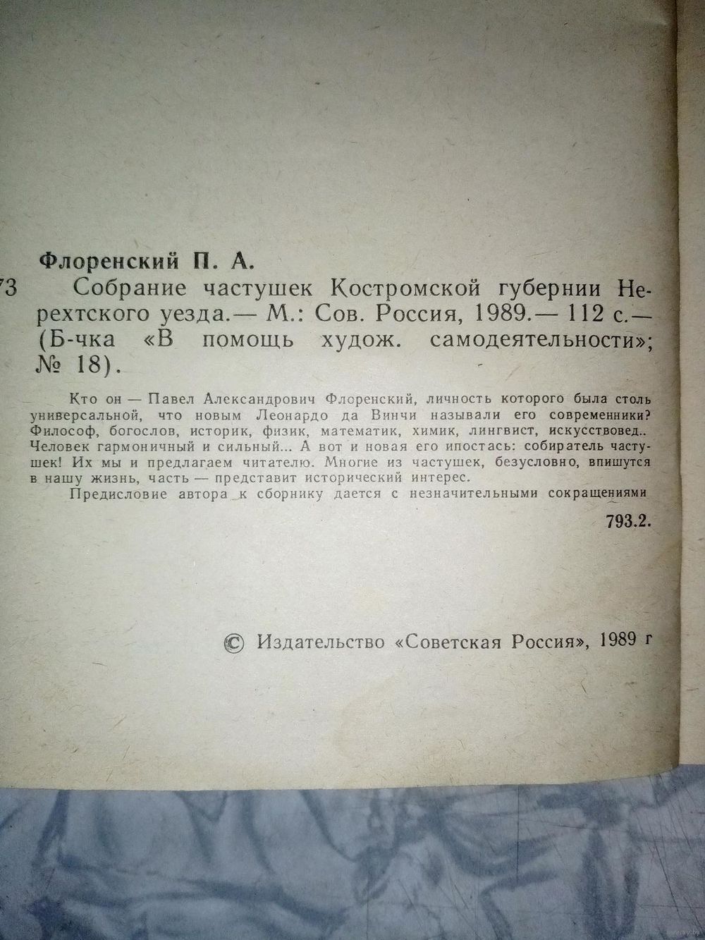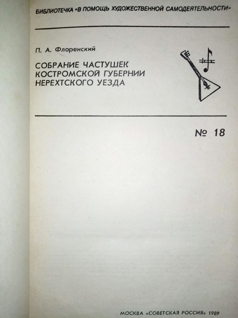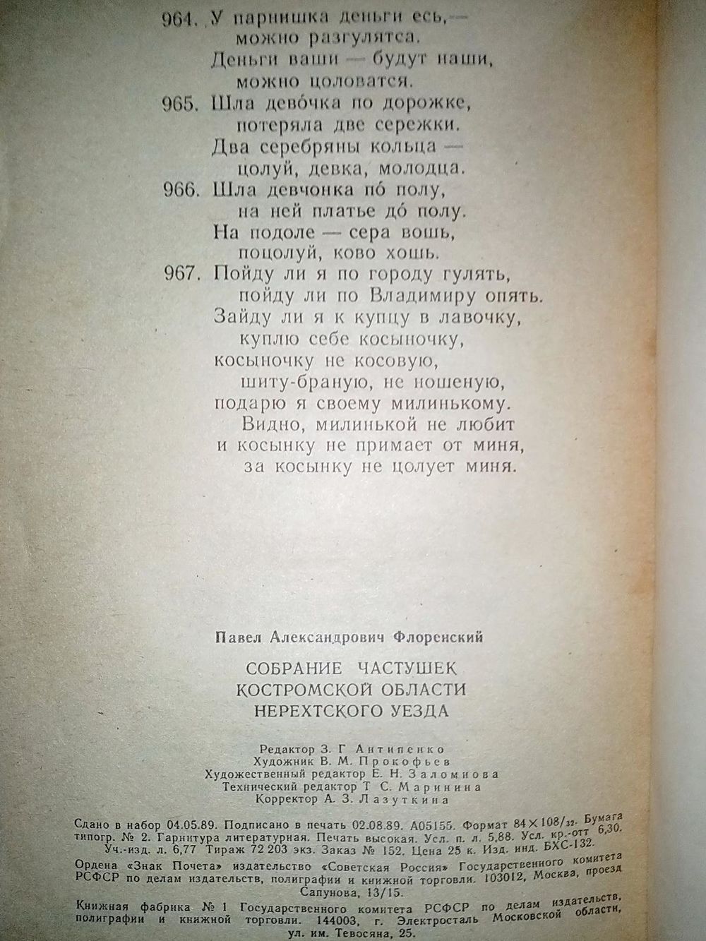 Собрание частушек Костромской губернии Нерехтского уезда. П.А. Флоренский 1989 г