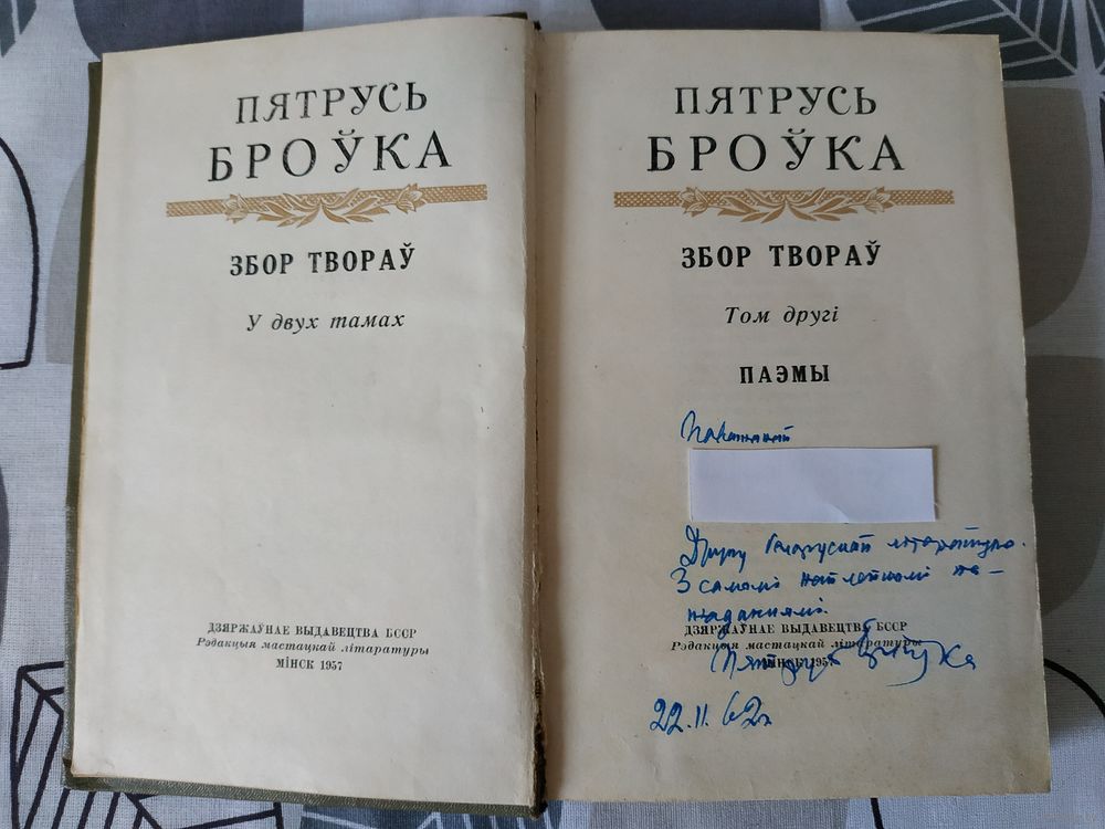 Собрание сочинений Петруся Бровки в двух томах, с дарственной надписью автора.