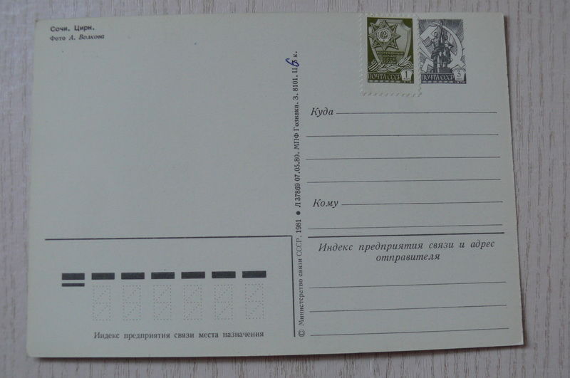 Сочи. Цирк; 1980, 1981, чистая, ДМПК, +доп.марка.