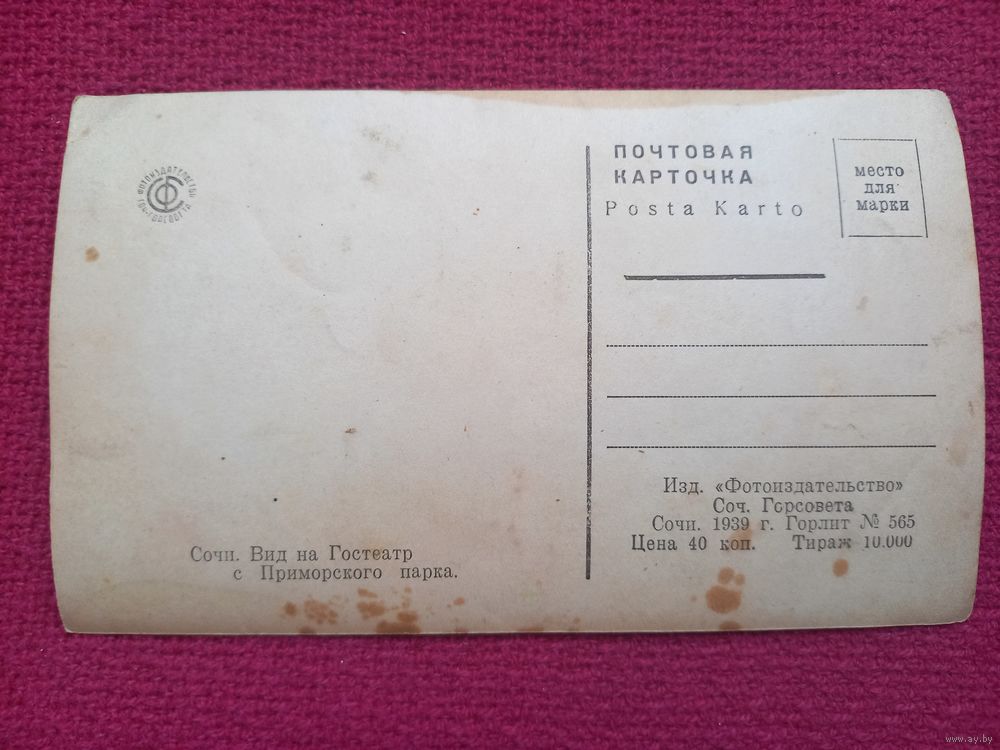 Сочи. Вид на Государственный театр с Приморского парка. 1939 г. Чистая.