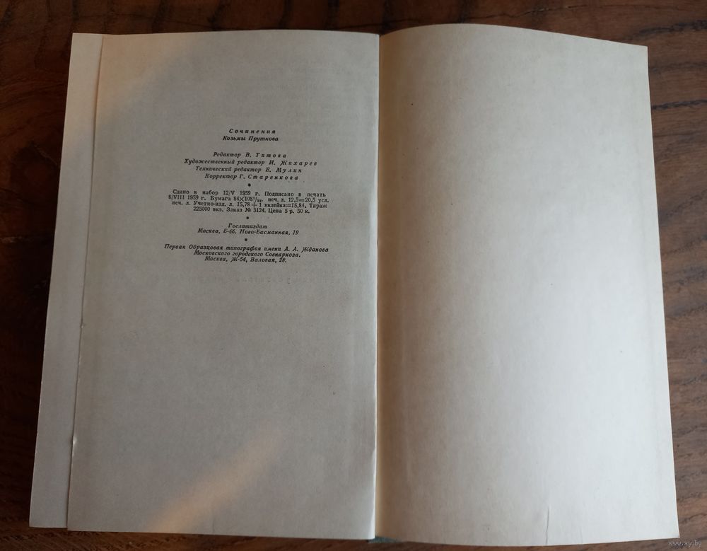 Книга "Сочинения Козьмы Пруткова", 1959 год, Москва, Государственное Издательство Художественной Литературы. 225 000 экземпляров.