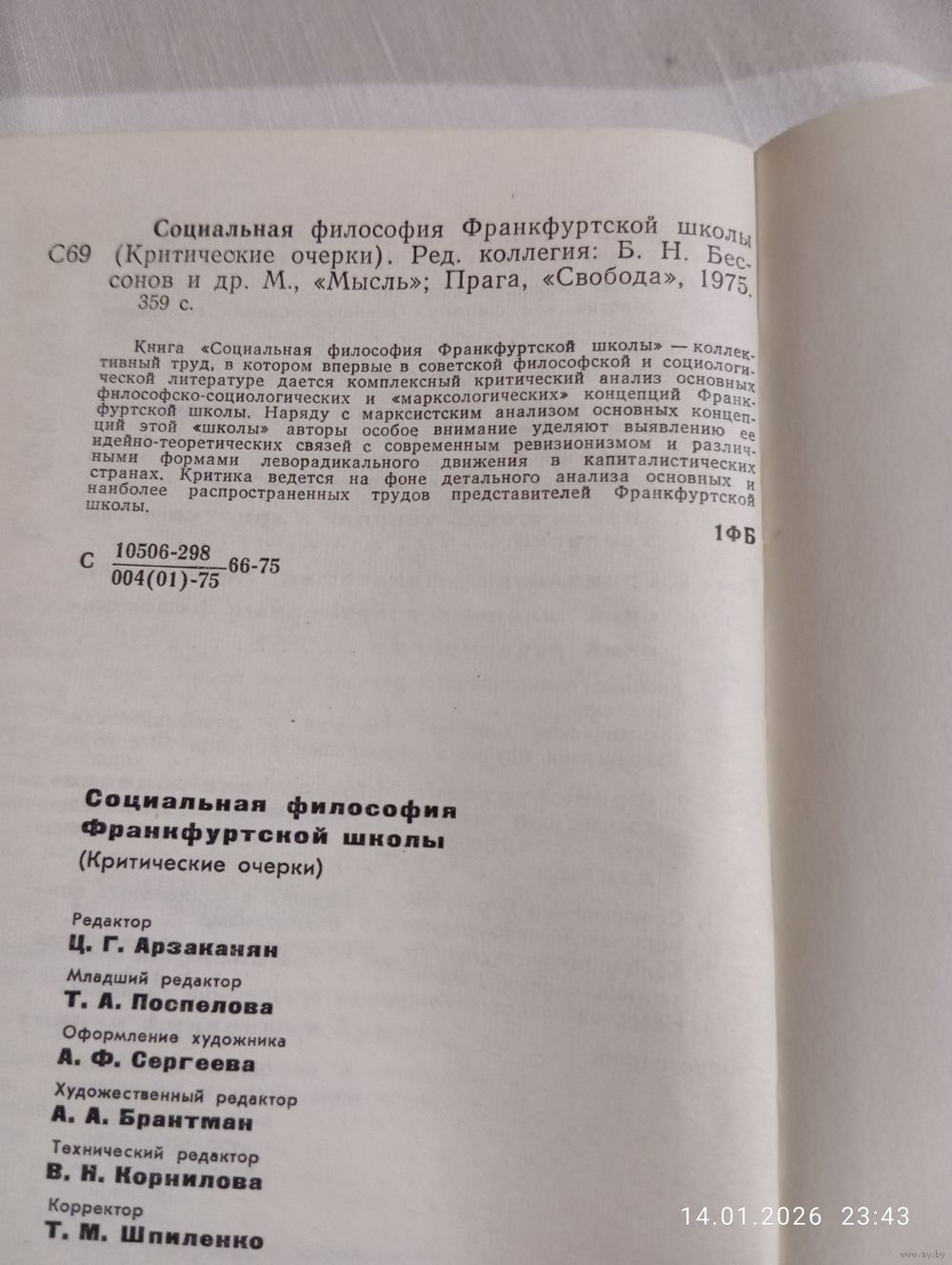 Социальная философия франкфуртской школы. Редкая. М. Мысль 1975. В хорошем состоянии, тв переплет. 360с. Тираж 11000. Возможность отправки Белпочтой, полная предоплата на карту Беларусбанк
