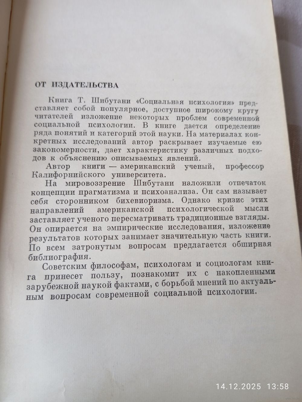 Социальная психология. Шибутани Т. М. Прогресс 1969. В хорошем состоянии, тв переплет. 535 с. Возможность отправки Белпочтой, полная предоплата