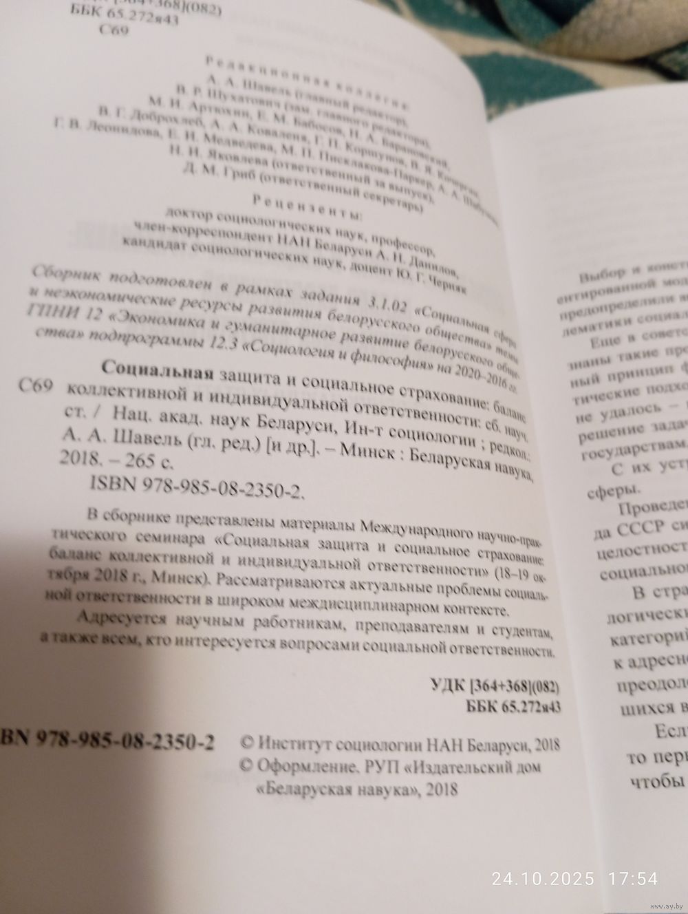 Социальная защита и социальное страхование: баланс коллективной и индивидуальной ответственности. Сборник статей. Мн.2018. в прекрасном состоянии, тв переплет. 265 с. Тираж 100(!). Возможность отправки Белпочтой, полная предоплата