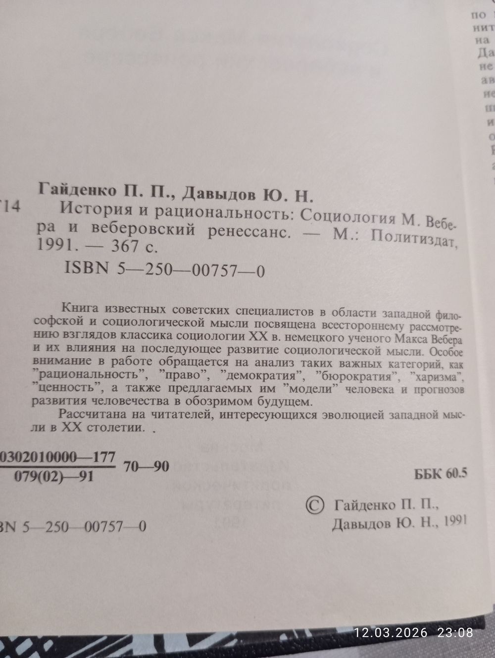 История и рациональность. Социология Макса Вебера. Гайденко П. Политиздат 1991. В хорошем состоянии, тв переплет. 367 с. Возможность отправки Белпочтой, полная предоплата