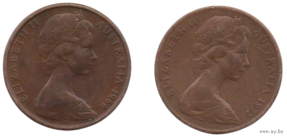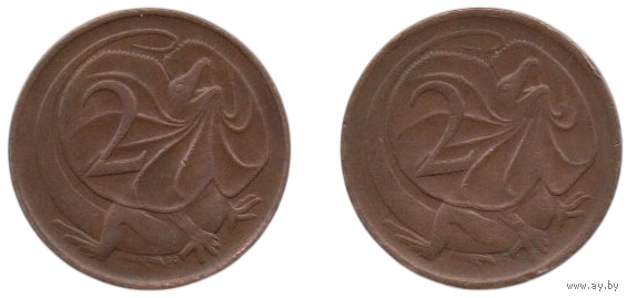 Содружество Австралии ( Австралия ). 2 цента 1966, 1972. Фауна. Плащеносная ящерица. Цена за одну монету.