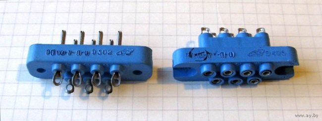 Электрические низкочастотные прямоугольные соединители предназначены для работы в цепях постоянного, переменного (частотой до 3 Мгц) и импульсного токов. Имеют климатическое исполнение УХЛ 2.1. Материал корпуса - полистирол. Покрытие контактов - химникель.