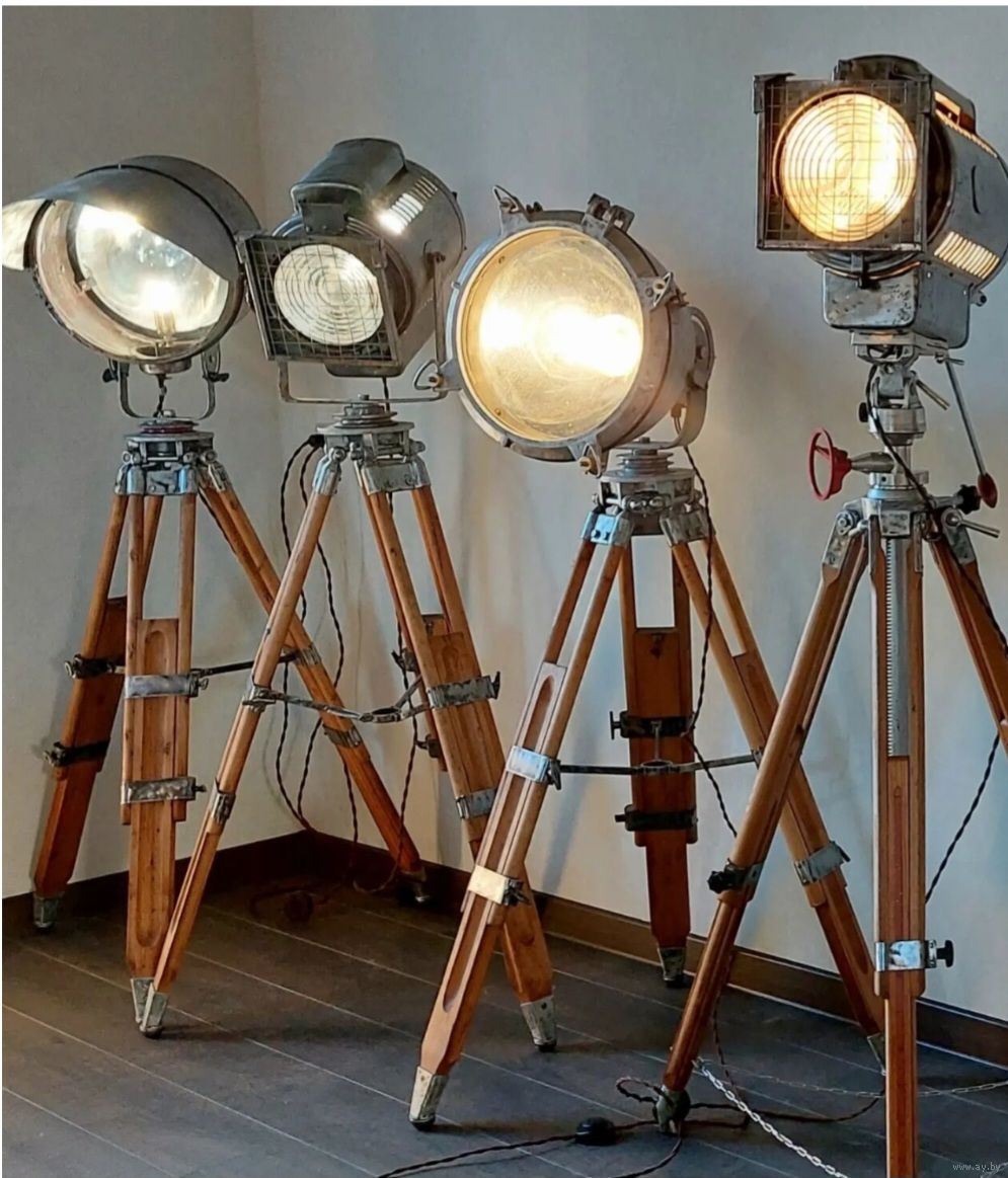 Восьмое фото для наглядности ,торшеры в стиле лофт сделанные из подобных софитов.