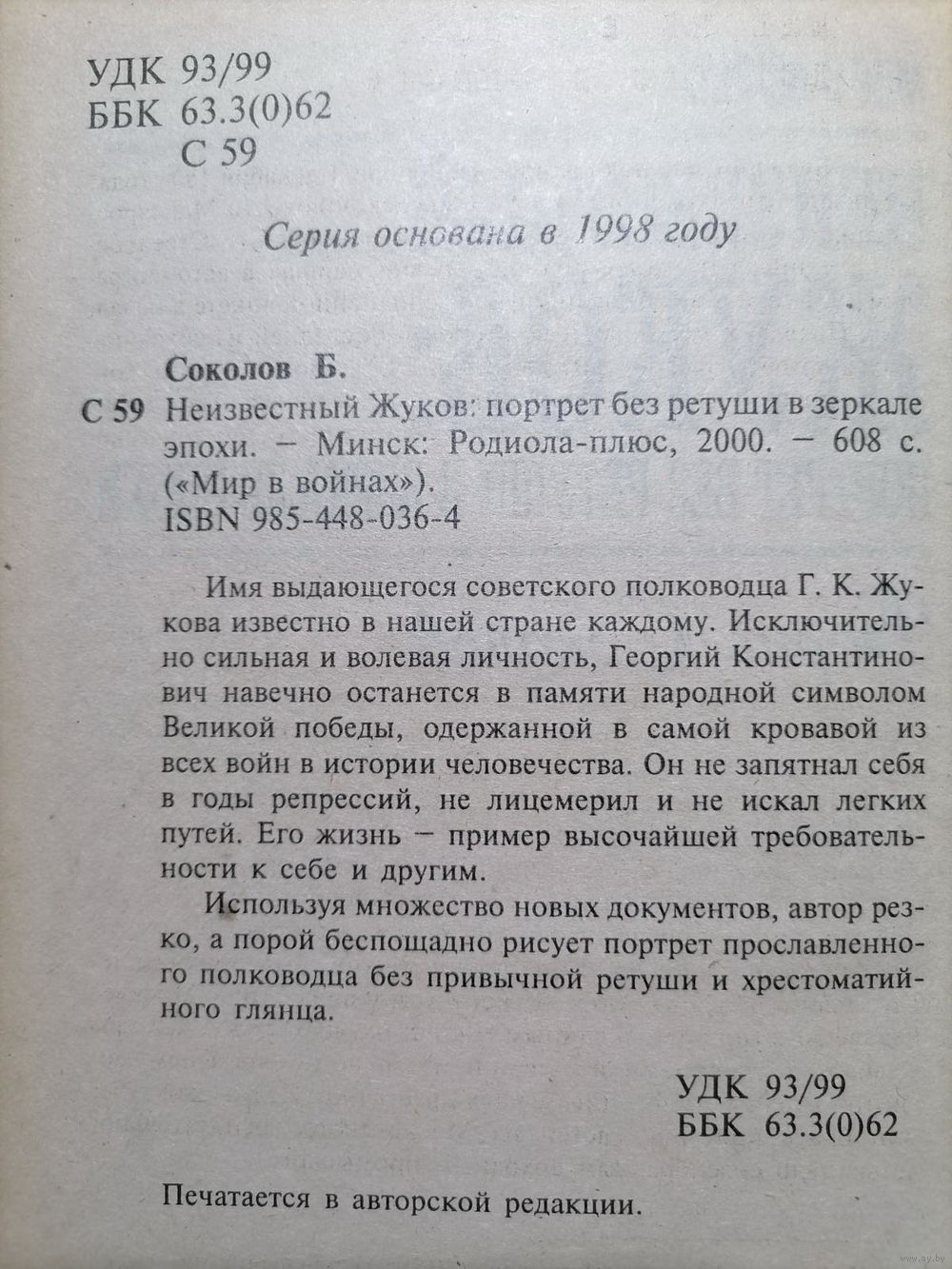 36. Автор:Соколов Борис. Издательство: Родиола-плюс. Год выпуска:2000. Состояние:Хорошее. Место издания:Минск. Серия:Мир в войнах. Количество страниц:608. Переплет:Твердый. Формат:Обычный.