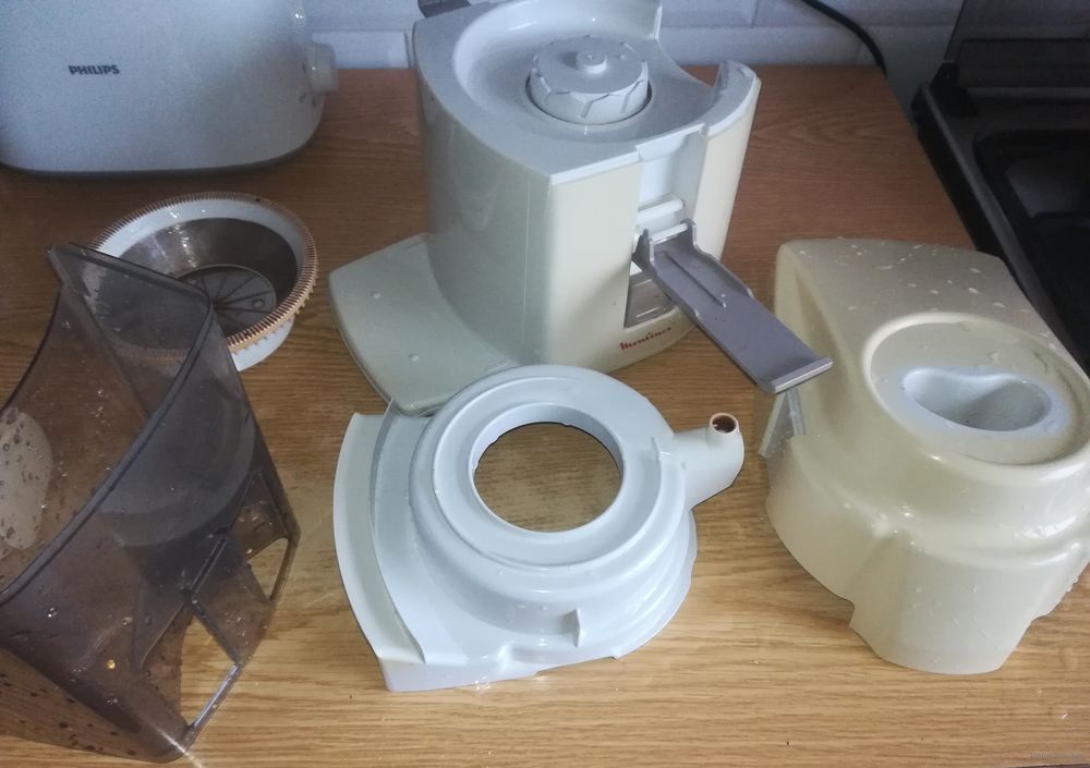 Соковыжималка Moulinex. Рабочая . Много времени стояла без дела. Пластик пожелтел . Остальное исправно. Торг