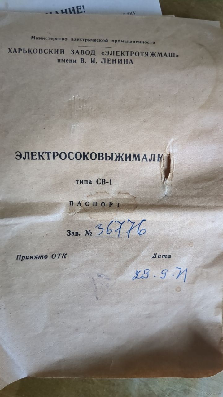 соковыжималка электрическая , 1971 г.в., Харьковский завод *Электротяжмаш*. состояние рабочее