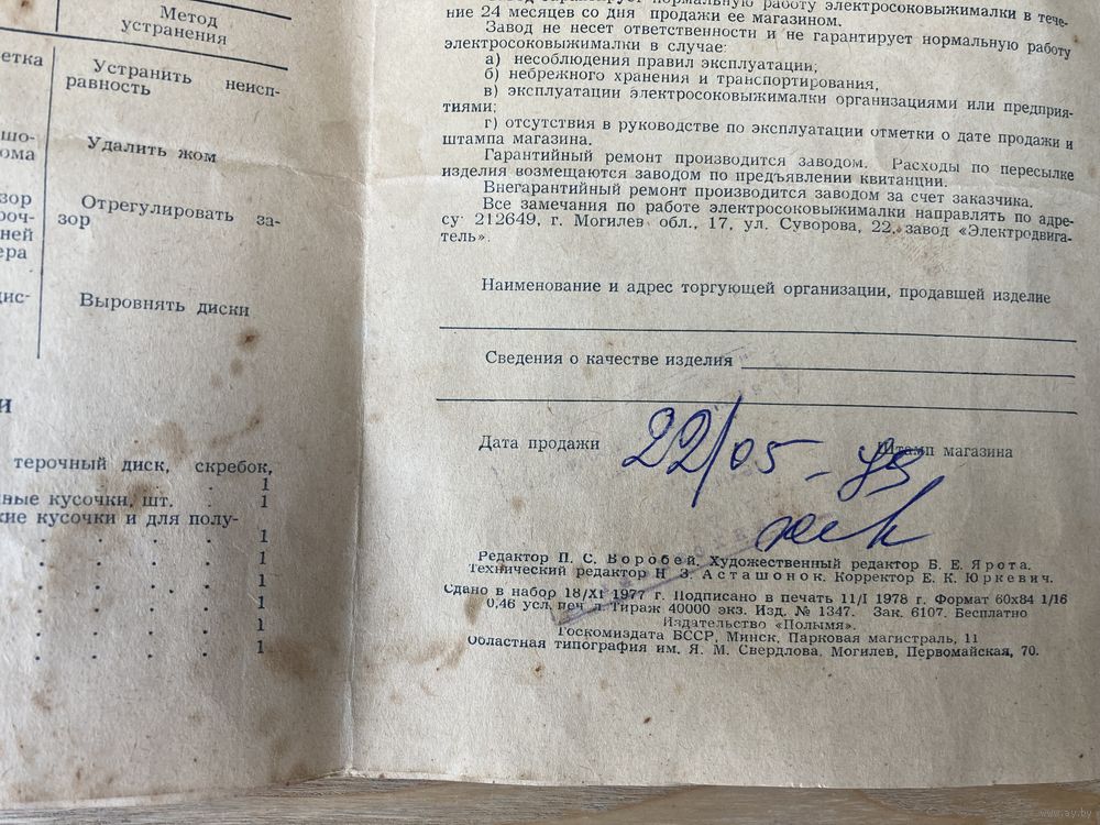 Товар обмену и возврату не подлежит согласно Постановлению Совета Министров РБ 22.07.2014 №703 "Об утверждении Правил продажи отдельных видов товаров и осуществления общественного питания и Положения о порядке разработки и утверждения ассортиментного перечня товаров" (в редакции постановления Совета Министров РБ 14.11.2018 №824) глава 9 пункт 78.                                                                            Дальше не разбирал , но механизм не скрипит , рукоятка вставляется и приводится в движение .Сам в жизни не пользовался , поэтому жду вопросов.С уважением.