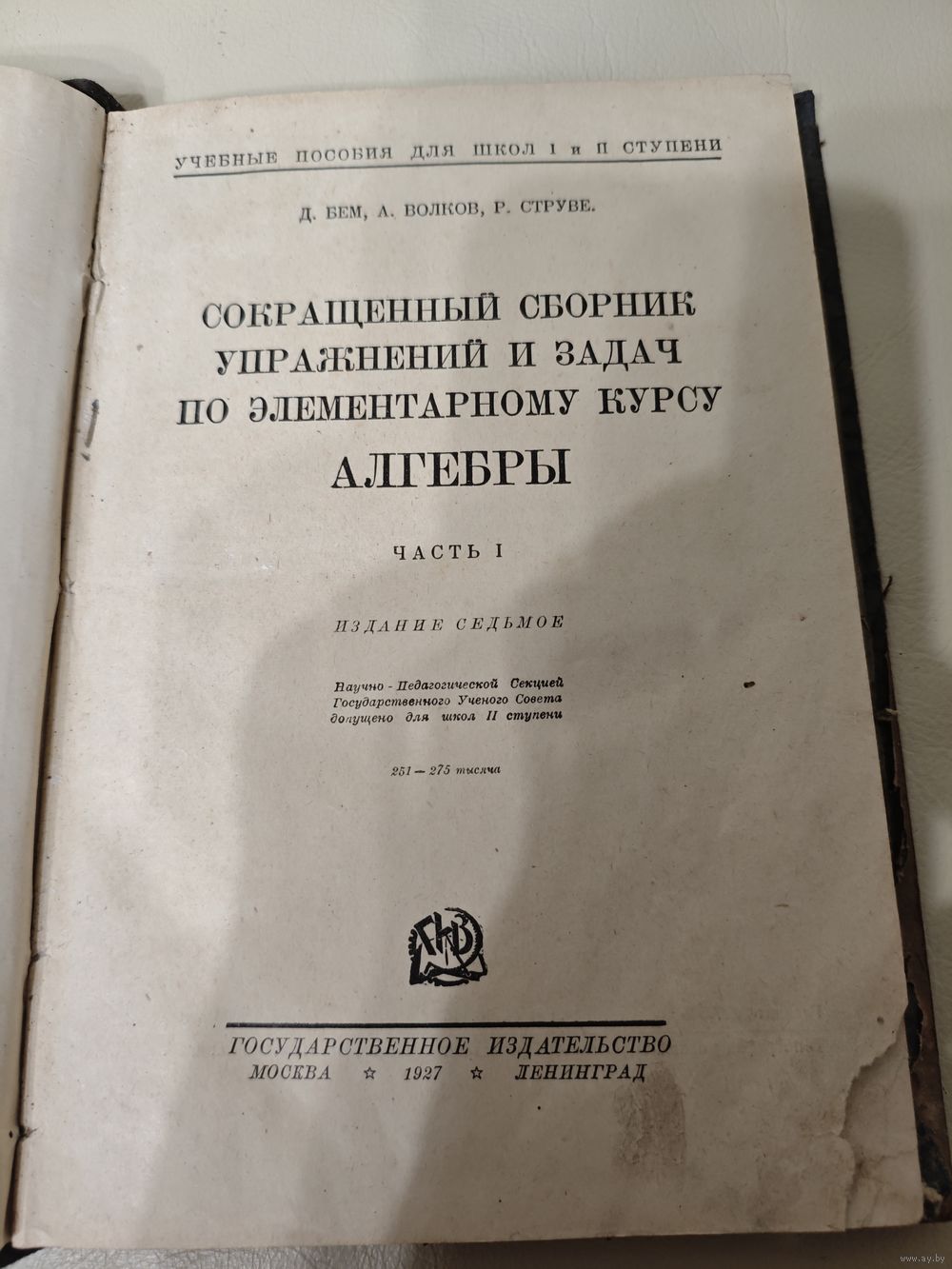 Сокращённый сборник упражнений и задач по элементарному курсу алгебры 1927 год.