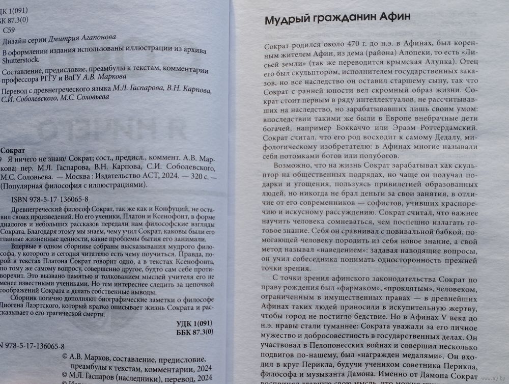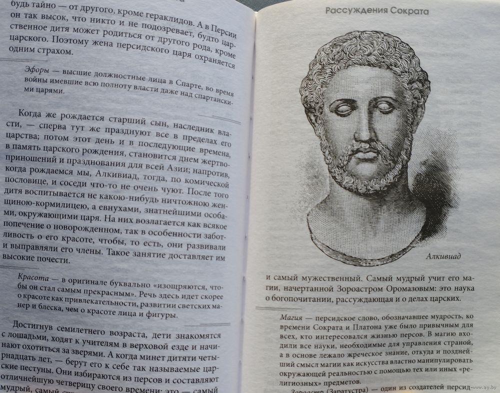 Тираж 1500 экз. 320 стр. Древнегреческий философ Сократ, так же как и Конфуций, не оставил своих произведений. Но его ученики, Платон и Ксенофонт, в форме диалогов и небольших рассказов передали нам философские взгляды Сократа. Благодаря этому мы знаем, чему учил Сократ, каковы были его главные жизненные ценности, какие проблемы бытия его занимали. Впервые в одном сборнике собраны высказывания мудрого философа, у которого и сегодня читателю есть чему поучиться. Правда, порой в текстах Платона Сократ говорит одно, а в текстах Ксенофонта, по тому же самому вопросу, совершенно другое, будто сам себе противоречит. Это вызвано памятью и толкованием мыслей учителя его не менее известными учениками. Но тем интереснее следить за цепочкой соображений Сократа и делать собственные выводы. Сборник логично дополняют биографические заметки о философе Диогена Лаэртского, который кратко описывает жизнь Сократа и рассказывает о его трагической смерти.