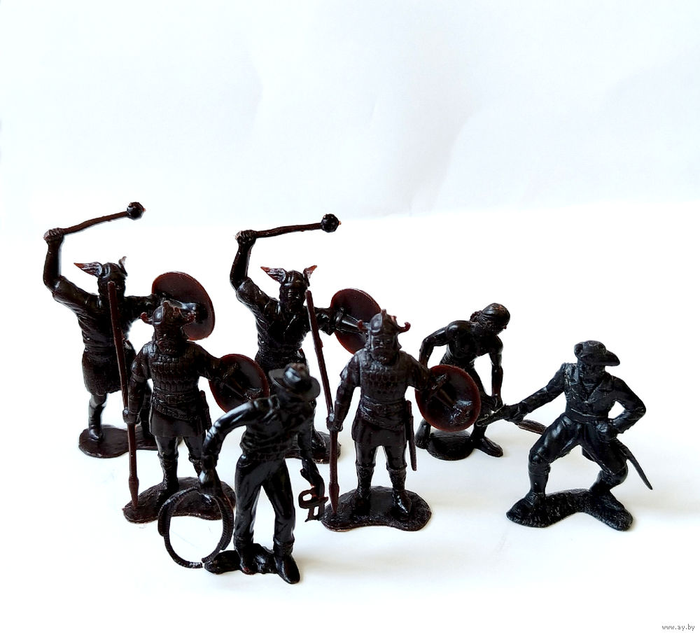 Солдатики времен СССР, Донецкий завод игрушек, 7 фигур. Рассмотрю вариант обмена на польские фигурки индейцы, ковбои, пираты и т.д. (в любом состоянии).