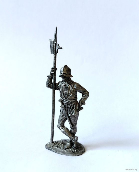 Этот воин из доспехов имеет только стальной шлем салад и кольчугу. Кроме алебарды воин имеет типичный короткий швейцарский меч, представляющий нечто среднее между мечом и кинжалом.