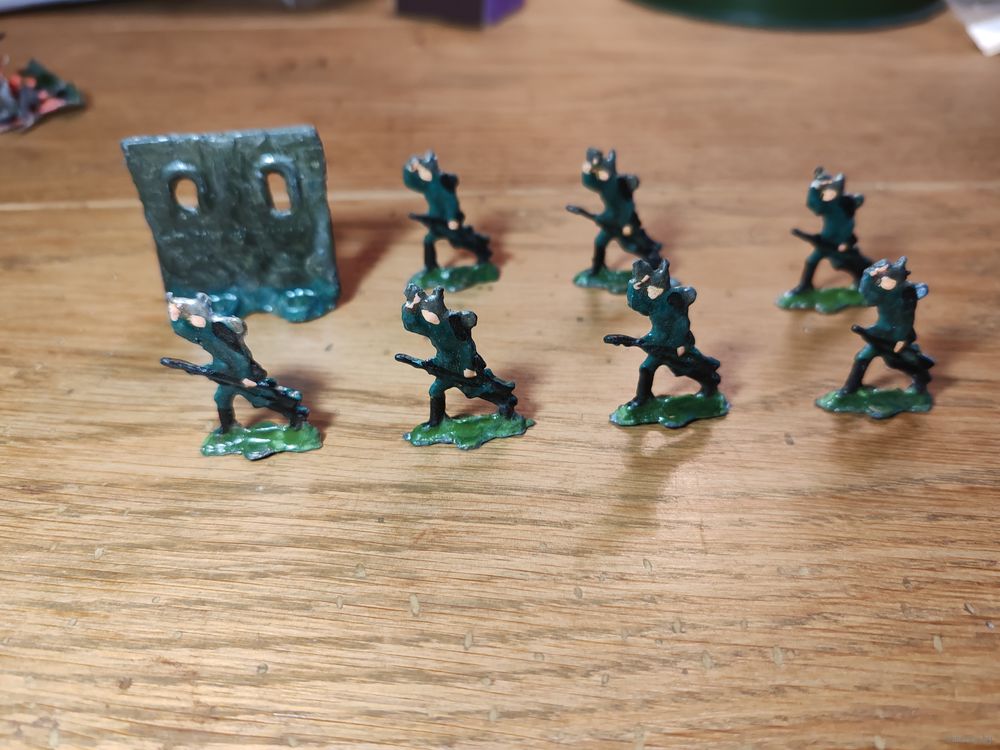 Солдатики, вроде как на Первую мировую войну, олово, высота 35 мм. Происхождение неизвестно, куплено давно на Питерской барахолке.