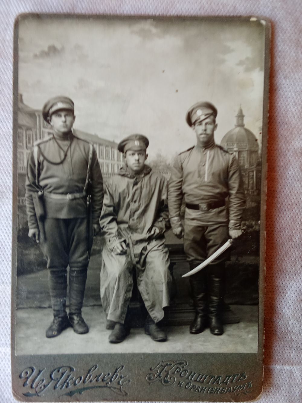 Три фотографии мужчины, два фото во время военной службы и одно до призыва на службу в 1915 году.