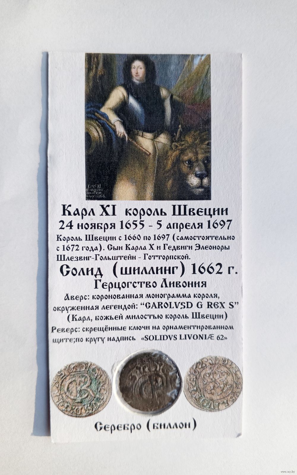 Солид 1662 г. Карл XI Ливония. В холдере 5х10 см.