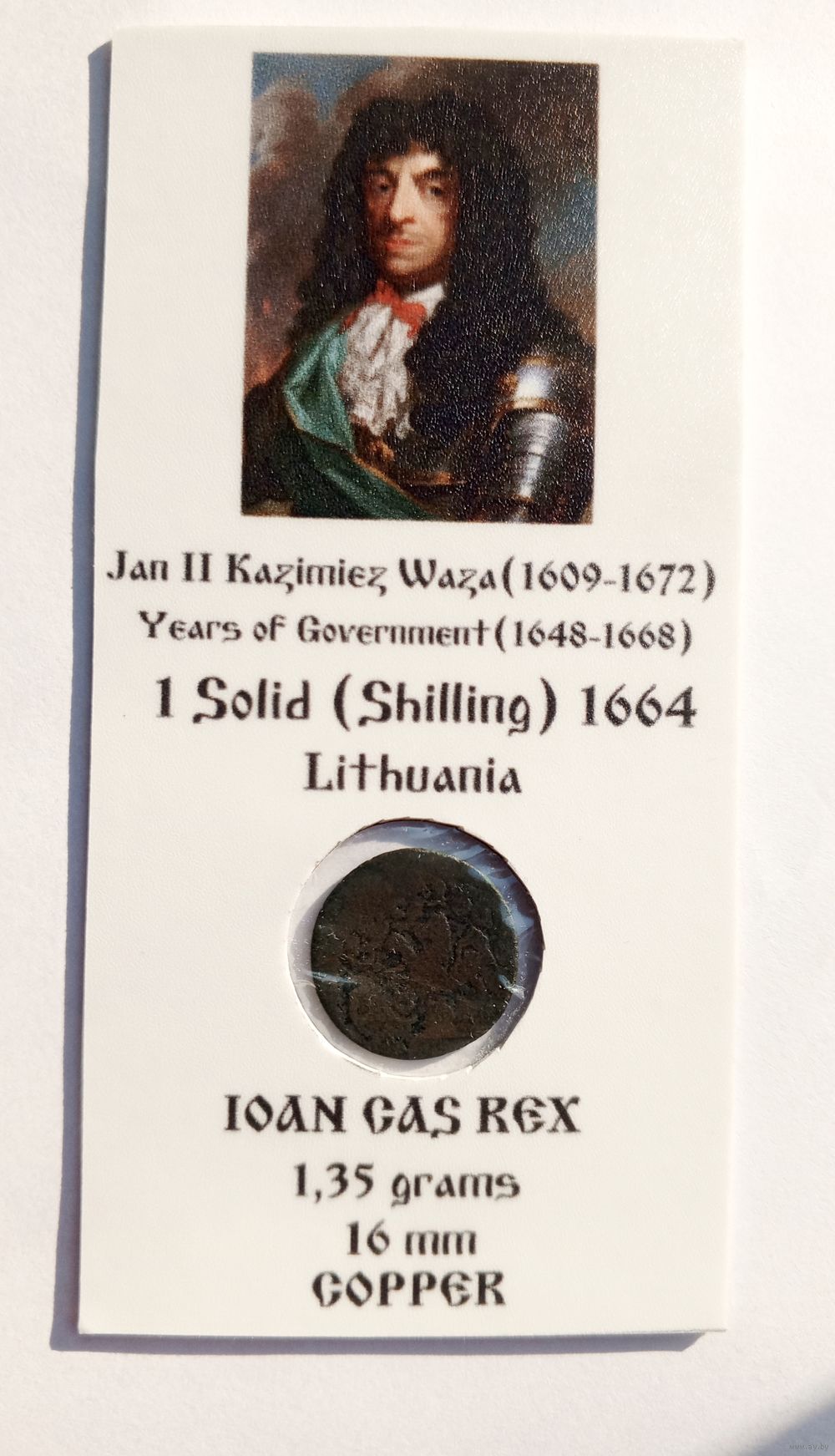 Солид 1664 г. Ян II Казимир Ваза (1648-1668). Литва. В холдере 5х10 см.