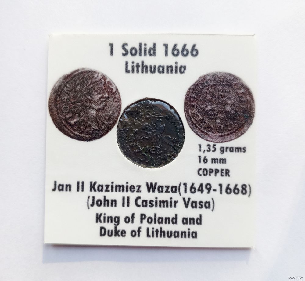 Солид 1666 г. Яна II Казимира Ваза (1648-1668). Литва. В холдере 5х5 см.