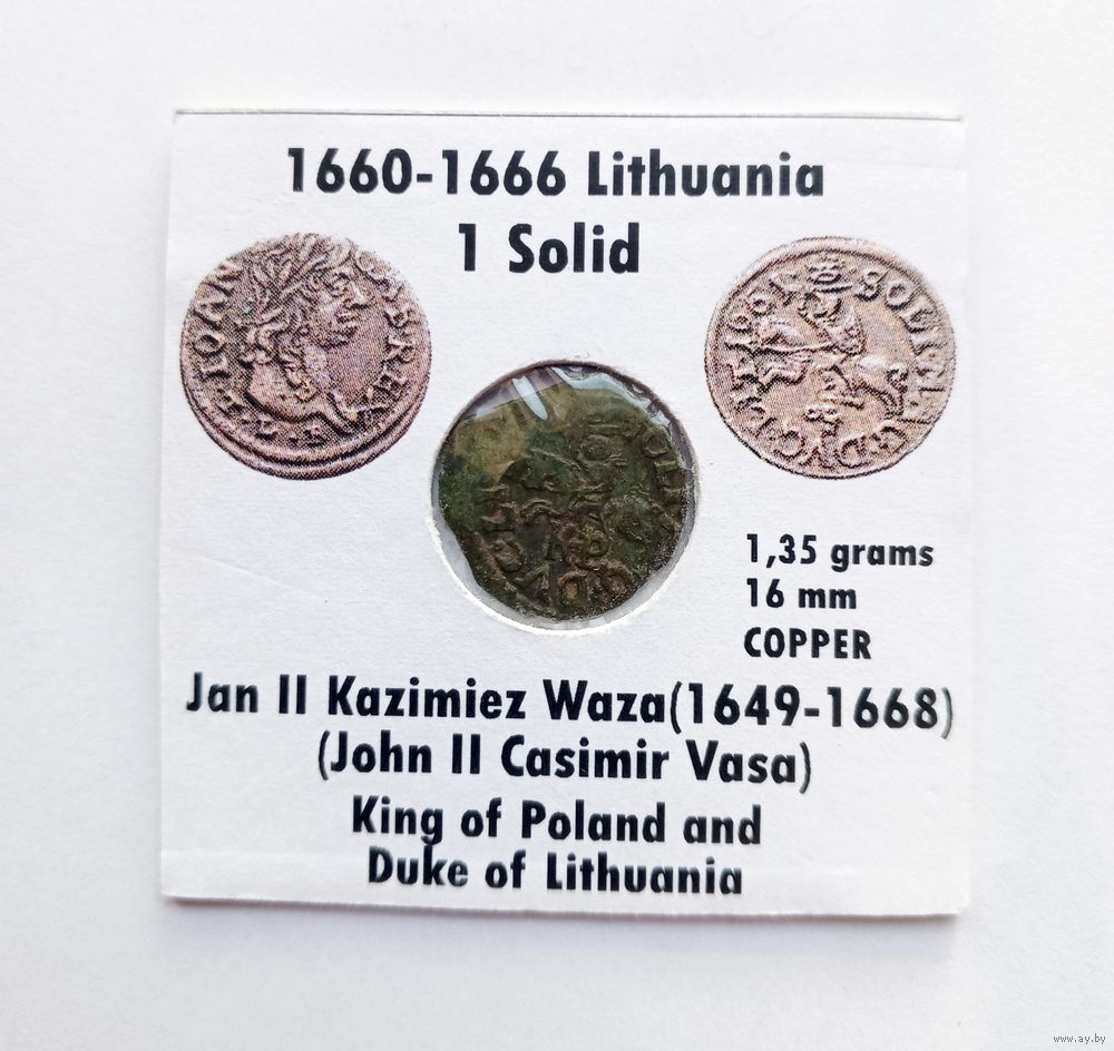 Солид Яна II Казимира Ваза (1648-1668). Литва. В холдере 5х5 см.