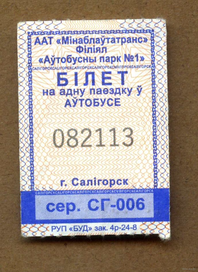 Солигорск. Талон на проезд в городском транспорте. Продается кондуктором. Серия СГ-006