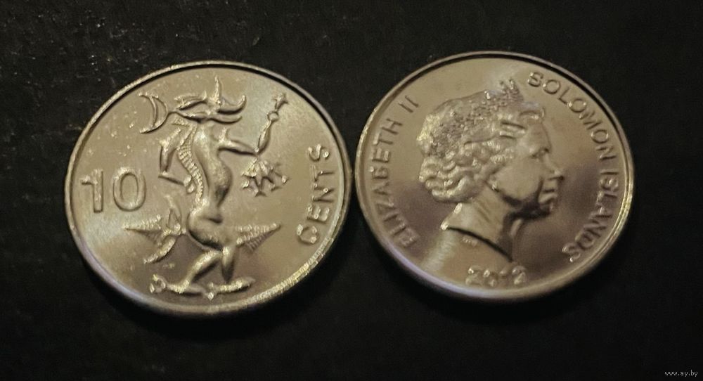 Соломоновы Острова 10 центов 2012 Королева Елизавета II Бог моря Нгориеру UNC