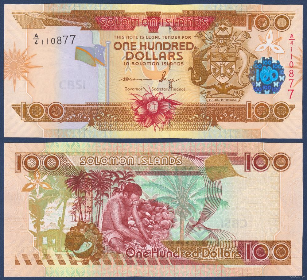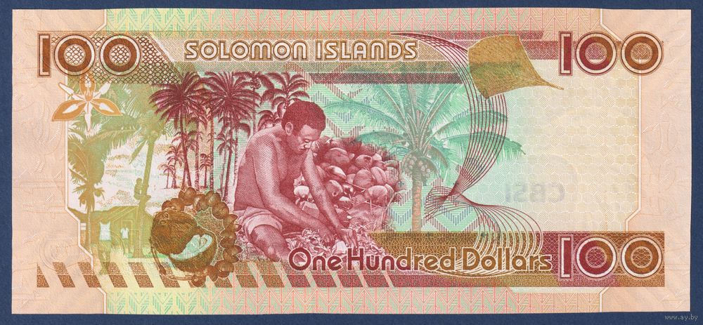 Соломоновы Острова (Соломоны), 100 долларов 2009 г., P-30(3) (A, сбор кокосов), UNC