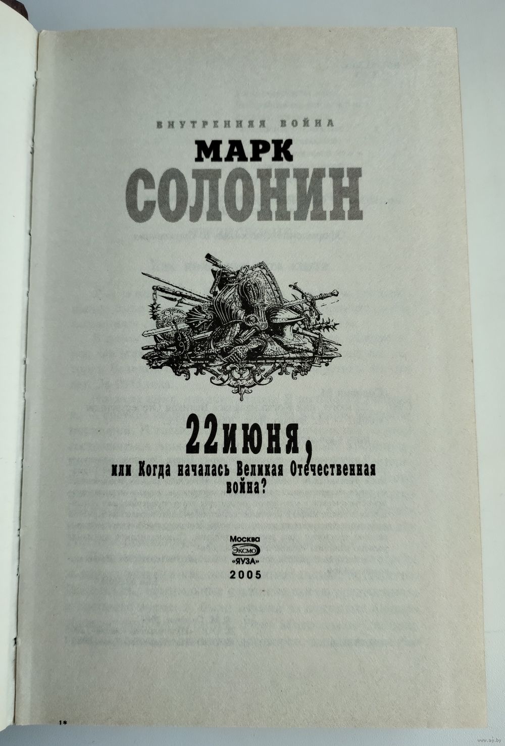 Солонин М. 22 июня, или Когда началась Великая Отечественная война? Серия : Великая Отечественная неизвестная война. М.: Яуза, Эксмо, 2005 г., 512 с. Твёрдый переплёт. Обычный формат.
