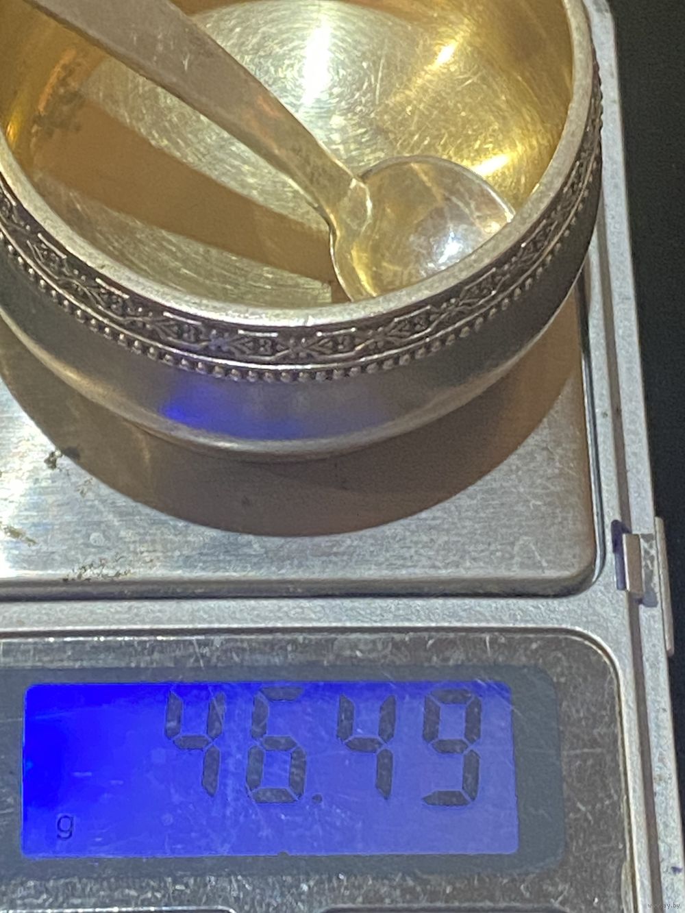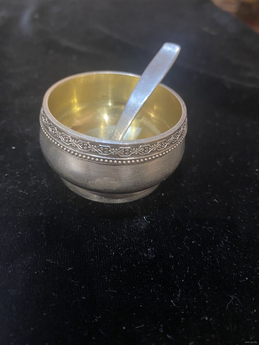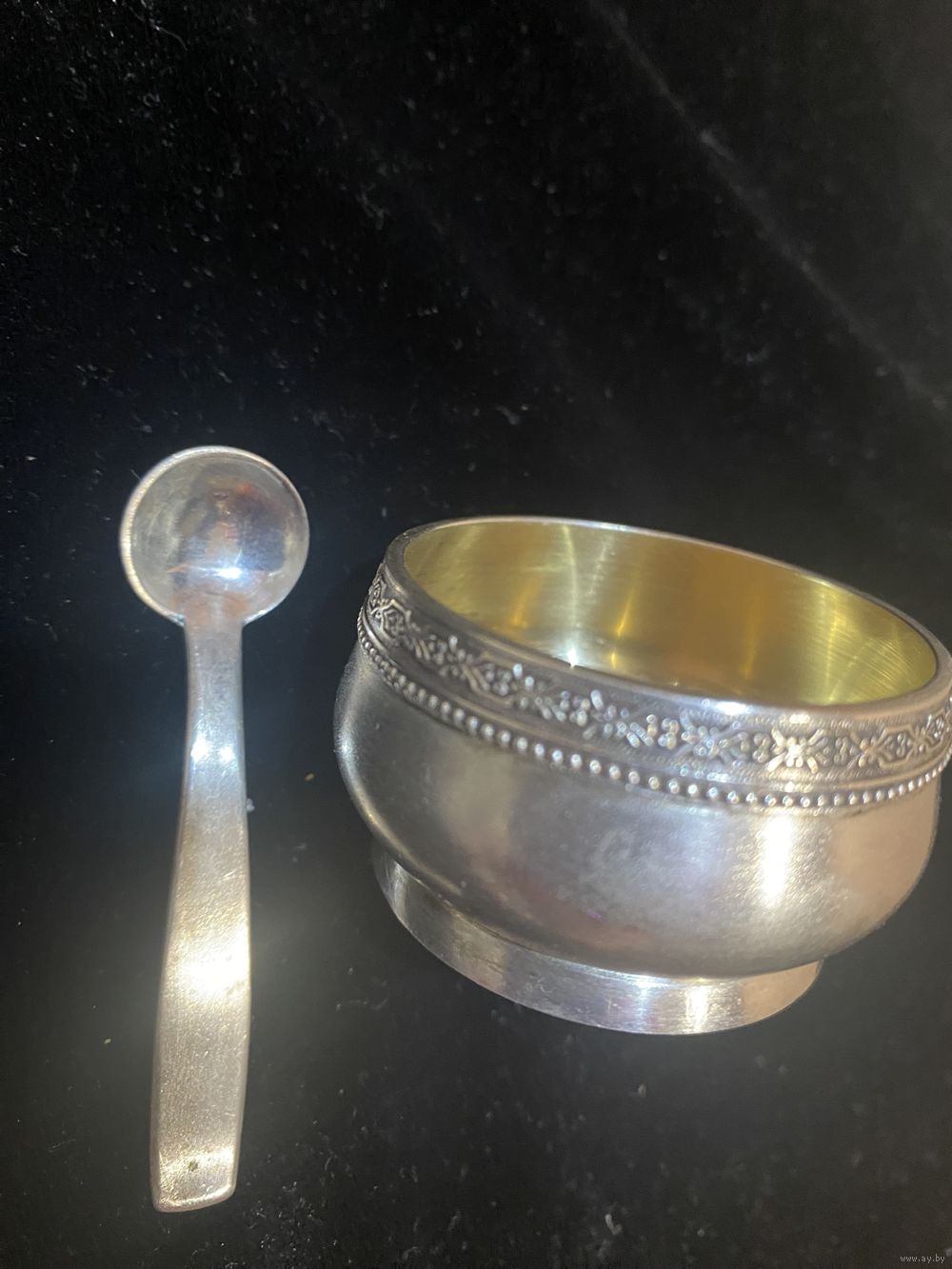 Солонка,серебро,СССР,красивая с позолотой,с ложечкой,875проба , вес 46,49гр