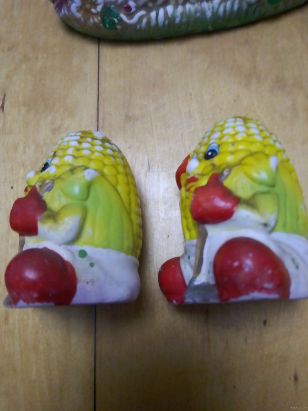 Солонка и перечница в кукурузе. Есть небольшой скол на подставке.