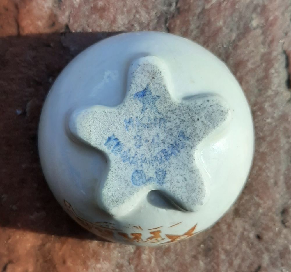 Определяйте самостоятельно по фото, следы бытования, потертости, трещин и сколов не обнаружил. |