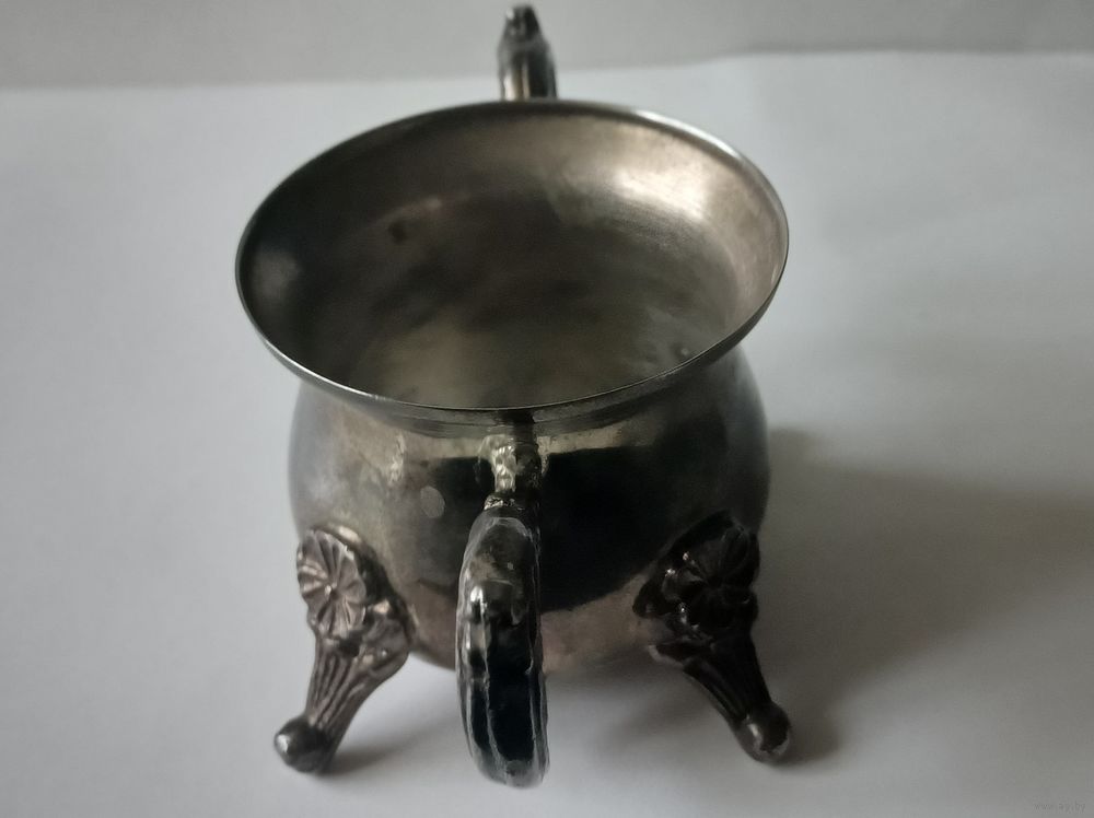 Размер по ручкам 12 см.высота 6см.диаметр верха 60 мм