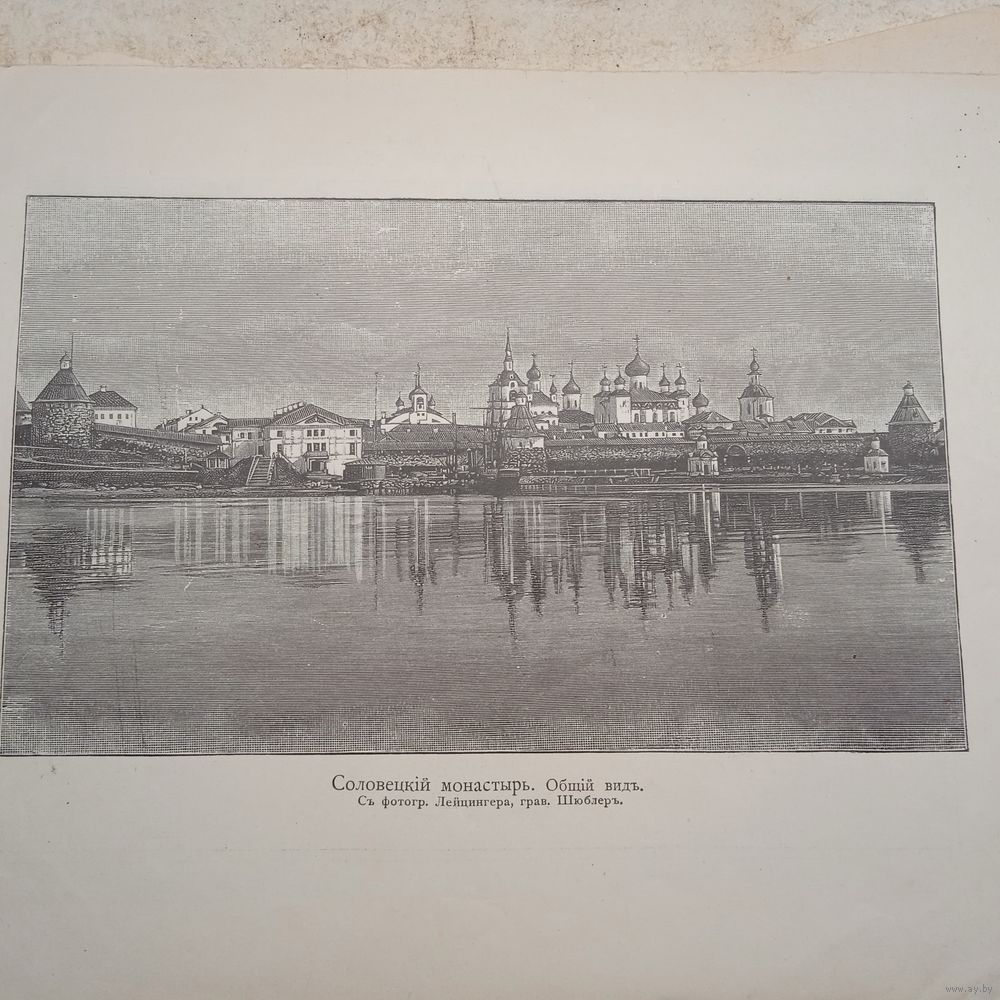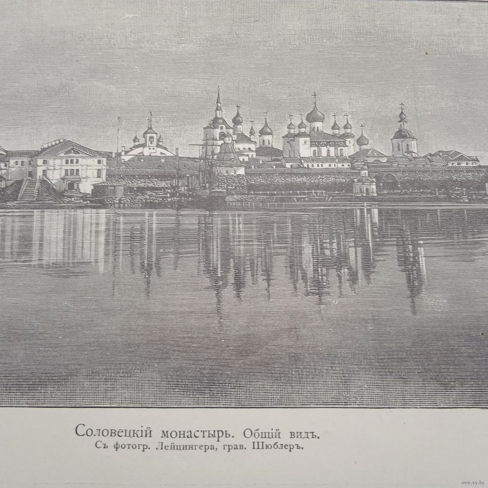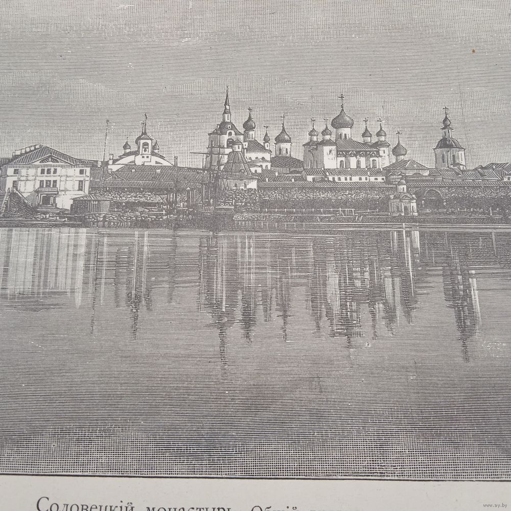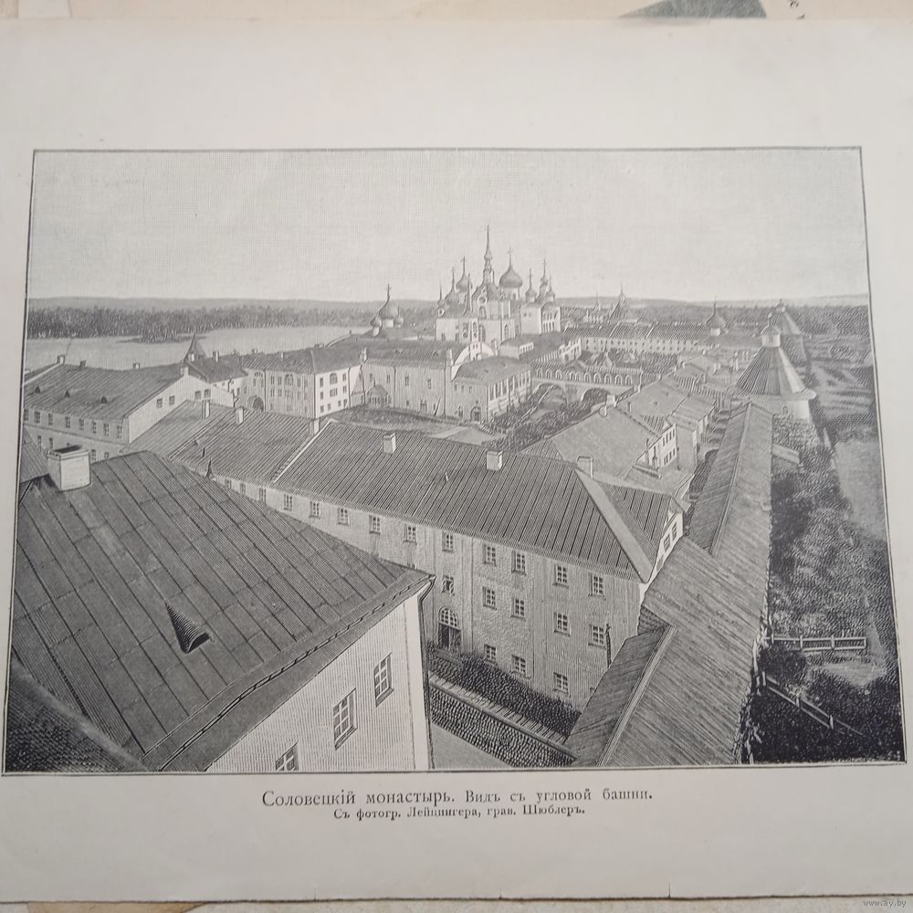 Соловецкий монастырь. Гравюра энц. 19-20 век. СПБ.25х17см.