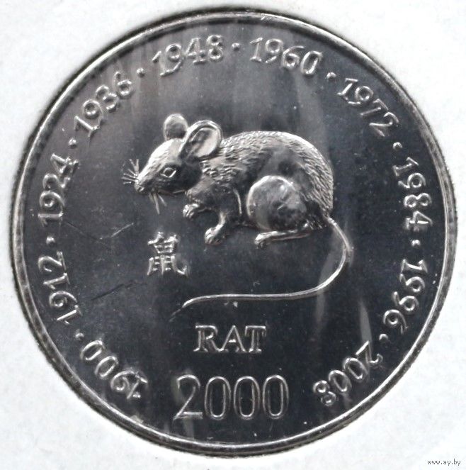 Сомали 10 шиллингов 2000 год "Китайский гороскоп - год крысы"