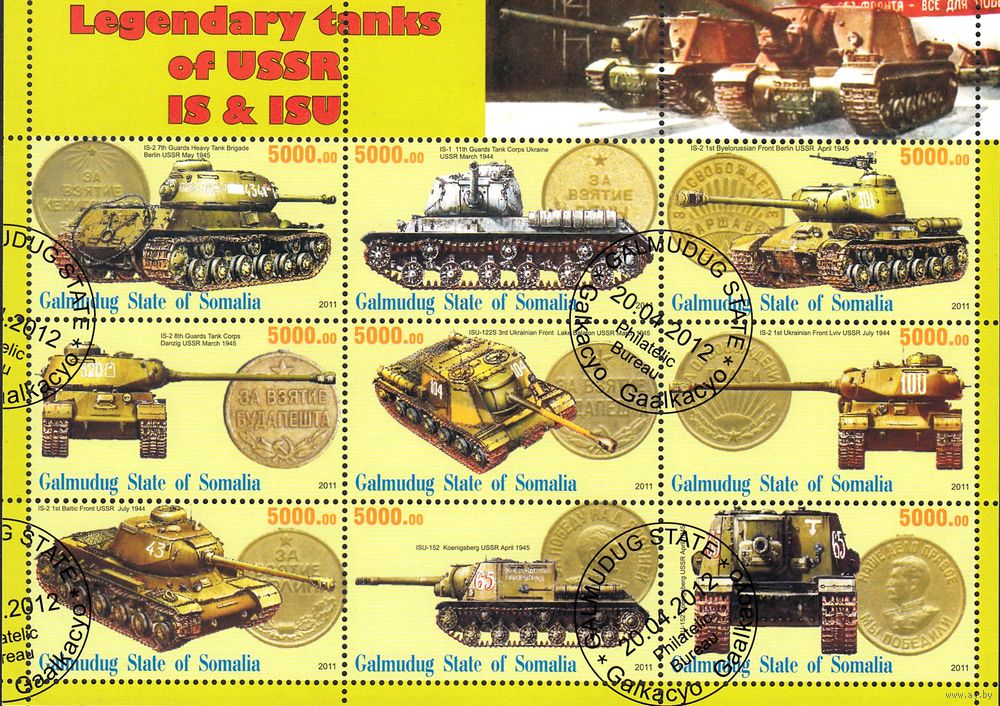 Сомали 2011 Танки СССР. Лист 9 марок. СТО