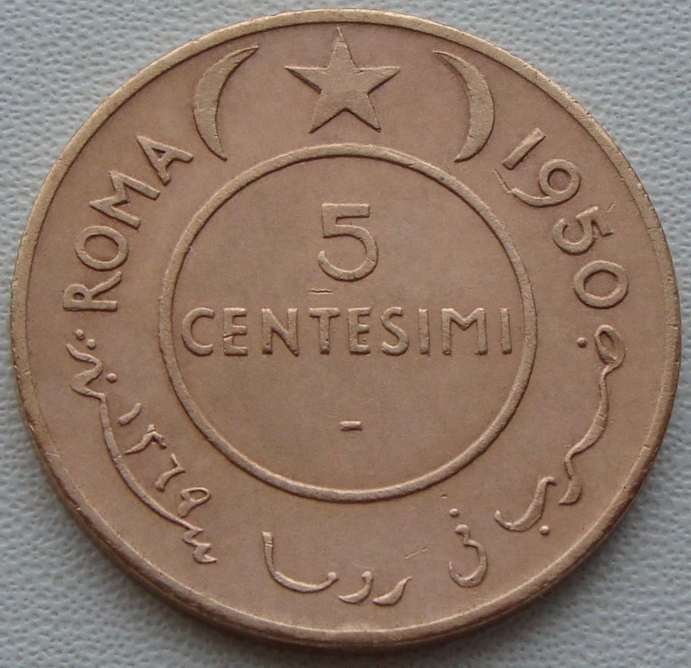 ///////// Доброго времени суток, спасибо, что заглянули в мой лоток!!! ////////// Данный лот выставлен на продажу как предмет коллекционирования и не является пропагандой чего бы то ни было, а также не является валютной сделкой!!!! Важно - Участникам торгов с отрицательным, нулевым или низким рейтингом просьба подтвердить намерения покупки лота по телефону или в обсуждениях лота. Лицам ранее не выкупившим у меня лоты, просьба ставки не делать, иначе они будут удалены. К Участию в торгах не допускаются лица не прошедшие верификацию на сайте. Продавец, сохраняет за собой право, снять ставку участника или отказать в продаже лота, если у продавца имеются подозрения в недобросовестности покупателя или отрицательные отзывы. ////////// Отправка обычным письмом, конвертом 1-ого класса, мелким пакетом (посылкой, бандеролью) с наложенным платежом и предоплата "на телефон" не рассматривается!!! В случае невыхода на связь или немотивированного отказа от покупки лота(ов), буду вынужден поставить отрицательный отзыв и переставить лот(ы). ///////// Информация: WWC номер KM # 2 Страна: Сомали Период: Сомало (1950 - 1960) Валюта: Сомало Вид чекана: Регулярный чекан Номинал: 5 чентезимо Год: 1950 Материал: Медь Гурт: Гладкий Форма: Круг Отношение авс/рев: Монетное (180°) Вес (g) 5.86 Диаметр (mm) 25.1 Толщина (mm) 1.5 Тираж: 6.800.000 шт //////// Состояние монеты на фото //////// Описание: Моя оценка состояния может не совпадать с вашей. Внимательно изучите фотографию!!!