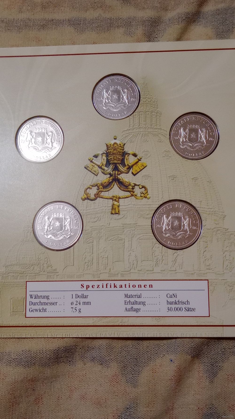 Сомали набор монет 2006 1 доллар 5 штук Папа Бенедикт 16