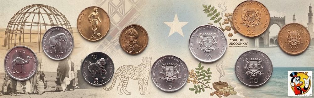 Сомали набор монет 5, 10, 25, 50, 100 шиллингов, UNC. Сторгуй за свою цену, предложи обмен!