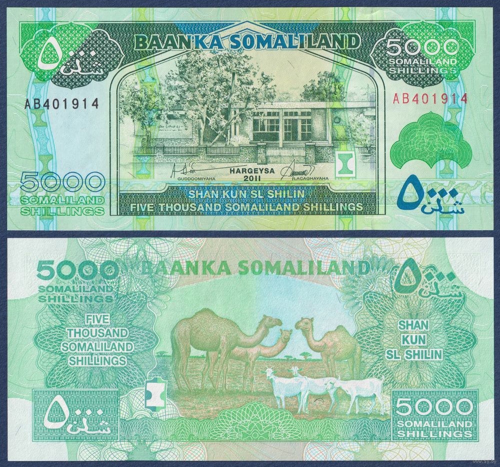 Сомалиленд, 5000 шиллингов 2011 г, P-21a (AB, верблюды), UNC